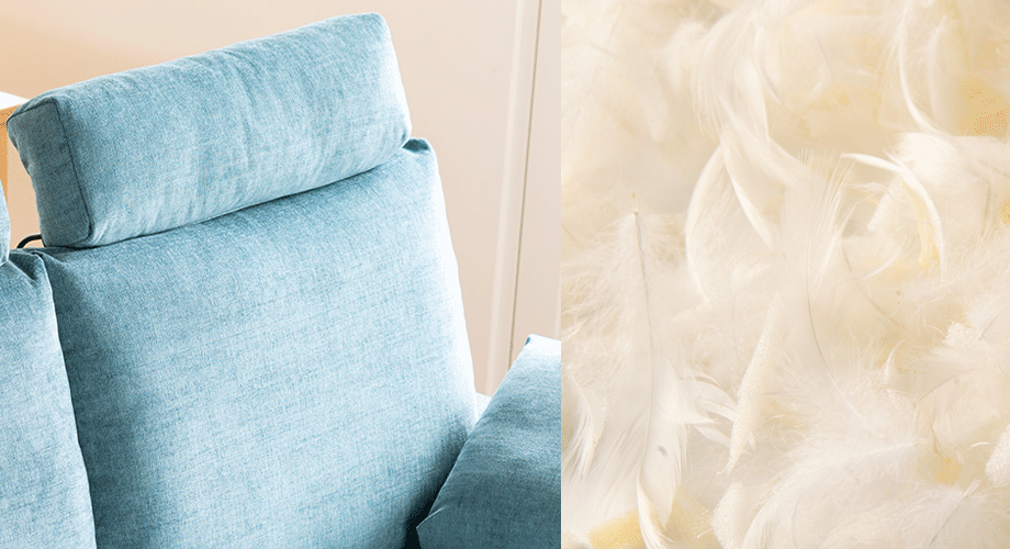 NewSugar Standard HSの専用ヘッドレストには厳選した羽毛を使用しています。ソフトな羽毛だからできる、 しなやかでコシのある感触は、自然な風合いでもたれた瞬間に「特別上等な心地よさ」を存分に味わっていただけます。