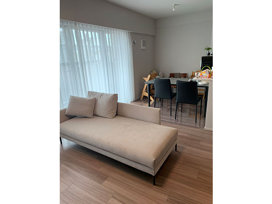 狭いリビングなので部屋が広く見えるソファを探していました。noyesを訪問した際に教えてくださったソファがこちら!背もたれや肘置きが薄く、座面が広くてゆったり座れます(^^)部屋が広く見える、理想のソファでした〜!