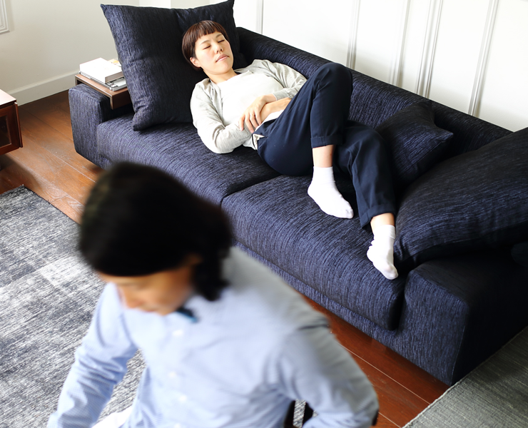 Decibel Professionalはお部屋の中を広々と開放的に魅せてくれるローソファのひとつです。座面は高反発弾性に優れたモールドウレタンと表層20mmの低反発ウレタンを使用していますので硬めながらもしっとりとお尻が落ち着く印象は、どのソファでも体感できない居心地の良さを感じていただけます。背クッションはダウン50%+フランス産フェザー50%、耐久性と通気性の優れた三次元スプリング構造のブレスエアーⓇをインサートした柔らかさと耐久性を両立させたこれまでにない独自のクッションです。背裏についたボルスタークッションがしっかりと背中をサポートしてくれますので安心して長時間おくつろぎいただけます。