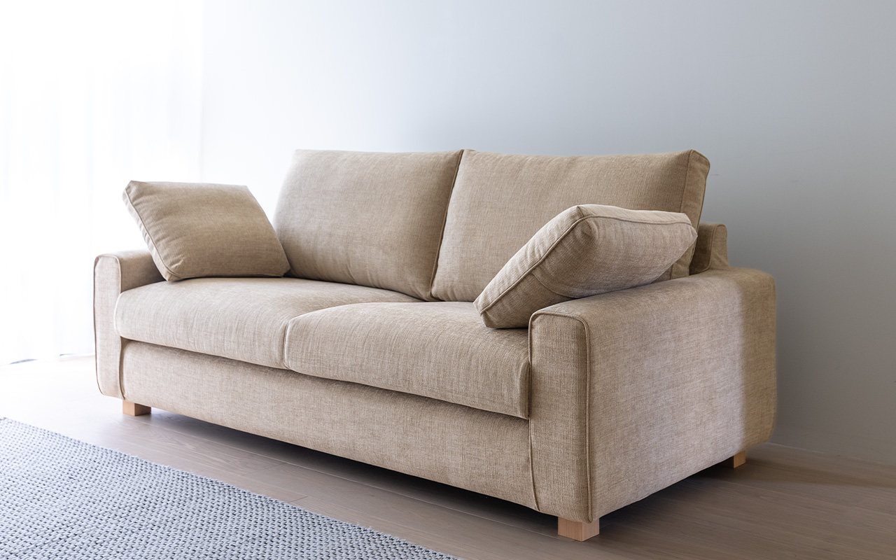 Transitは、奥行き780mmに設計されたコンパクトなローソファです。限られた間取りにもすっきりと収まりながら、ほどよく硬めの座り心地で安定感をもたらします。背の角度を垂直に近く設計することで、背中をしっかりと支え、ローソファでありながら掛け心地の良さを実現しています。ホワイトアッシュ材の木ひじが加わることで、木のぬくもりとスマートなフォルムがバランスよく調和し、空間をすっきりと心地よく彩ります。ライフスタイルにあわせて両ひじと片ひじをご用意いたしました。日常のシーンに寄り添う一台をお選びください。