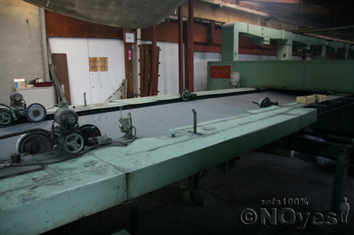 ソファ生地には化粧を施します。縮獣加工(洗浄加工)や、カレンダー加工、裏のり加工といった化粧が生地の品質をよりよいものにしていきます。 縮獣加工(洗浄加工)は大きな洗濯機の中に生地を入れ生地に付いている余分な汚れやゴミを一気に綺麗に流します。