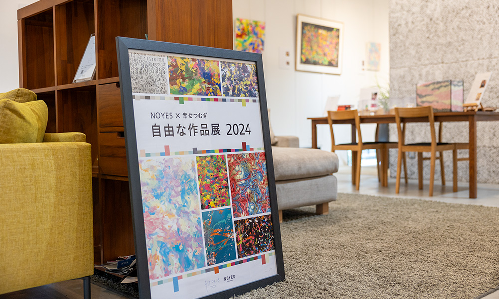 NPO法人幸せつむぎ様にご協力いただき、アール・ブリュット作品を楽しむ「自由な作品展 2024」を開催いたします。 「自由な作品展」は、様々な障害を抱えながらも、その内に秘めた才能や創造力を存分に発揮し生み出された、魅力的な作品の数々にもっと多くの方がふれあっていただきたいという思いから開催しているイベントです。 NOYESのソファでゆったりとくつろぎながら、作品に込められたエネルギーや思いを心ゆくまでご堪能ください。