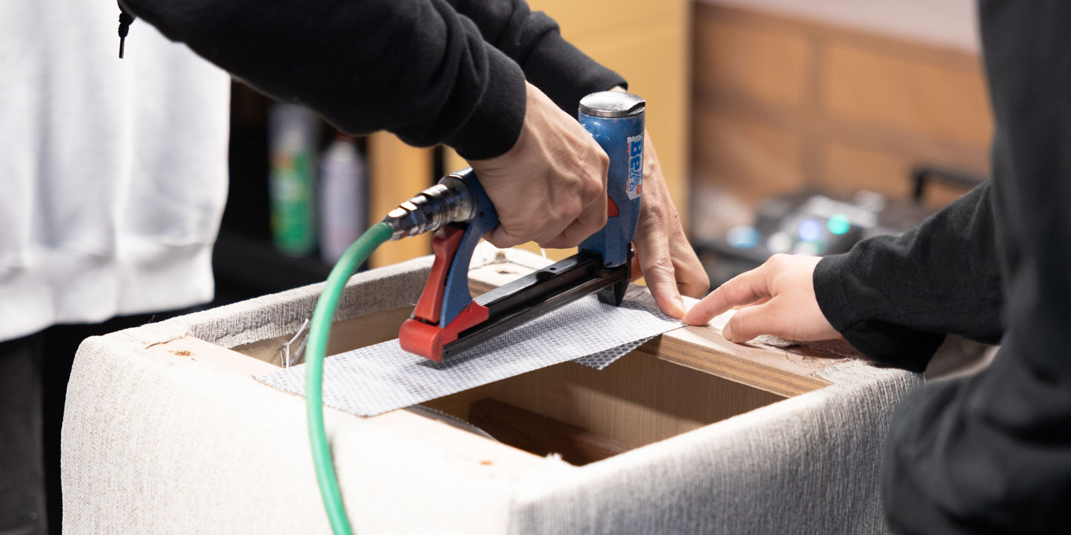 国産ソファブランドだからこそ、わたしたちができること。実際にソファを作る工程や製作に携わる人、道具に触れることでソファをもっと身近に感じていただきたいという想いで開催させていただく「カップル・ご夫婦でソファ作り体験」。