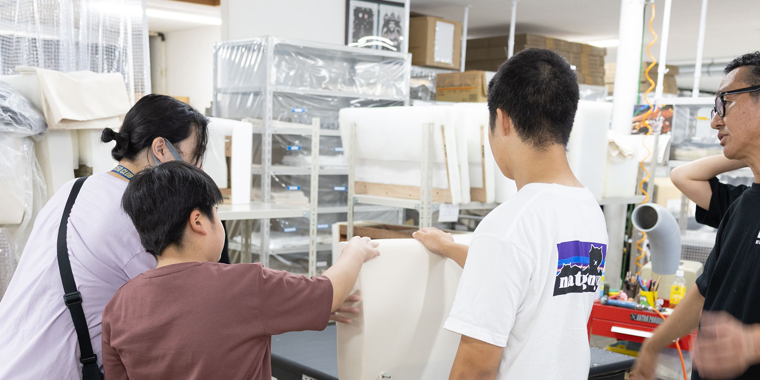 工場見学は、世代や団体を超えて、たくさんの皆様にお越しいただいております。これからも、ソファを通じて、ものづくりの大切さや素晴らしさを伝えるために日々、努力を重ねて参ります。