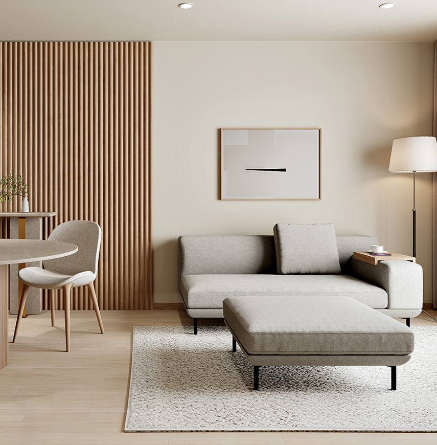 Variousシリーズは、どんなお部屋にも合うように様々な意匠のソファをご用意しております。中でも、Fader Standardは音量調節やバランスを整えるための機能という意味を持つ「Fader」という言葉から着想を得ており、ソファで過ごす時間が日常におけるバランスを整えるイメージを大切に作りあげました。