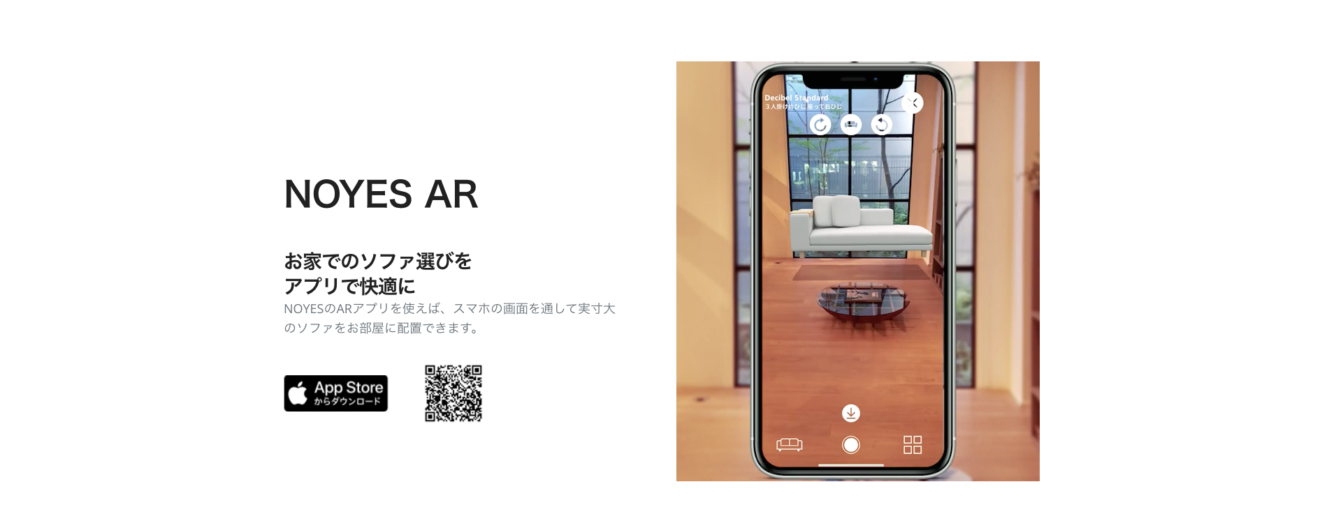また、国産ソファブランド NOYESでは、ソファを安心して購入できるよう色々なサービスをおこなっており、その代表的なものの1つが「NOYES AR」というアプリです。
