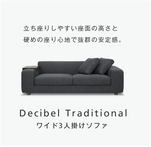 ナチュラルモダンなお部屋にシルバーグレーカラーで張られたDecibel Traditional ワイド3人掛けがとてもよく馴染んでおりますね。インテリアや床の木の風合いがリラックス感をさらに高めてくれてやさしさが溢れる素敵な部屋です。 ソファ:Decibel Traditional ワイド3人掛け 生地:AAランク VL-71-SGY