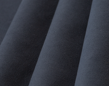 上質のスエードを想わせるやわらかな風合と手触り。極細繊維が表面をおおっているために、肌触りはソフトでなめらかです。独自の方向性を備えたナップ(毛羽)は、高級スエード特有の指で文字や模様が書けるフィンガーマーク効果を生み出します。また、天然皮革に比べ、夏涼しく、冬にあたたかい、季節に応じて温度変化に対応する快適素材です。