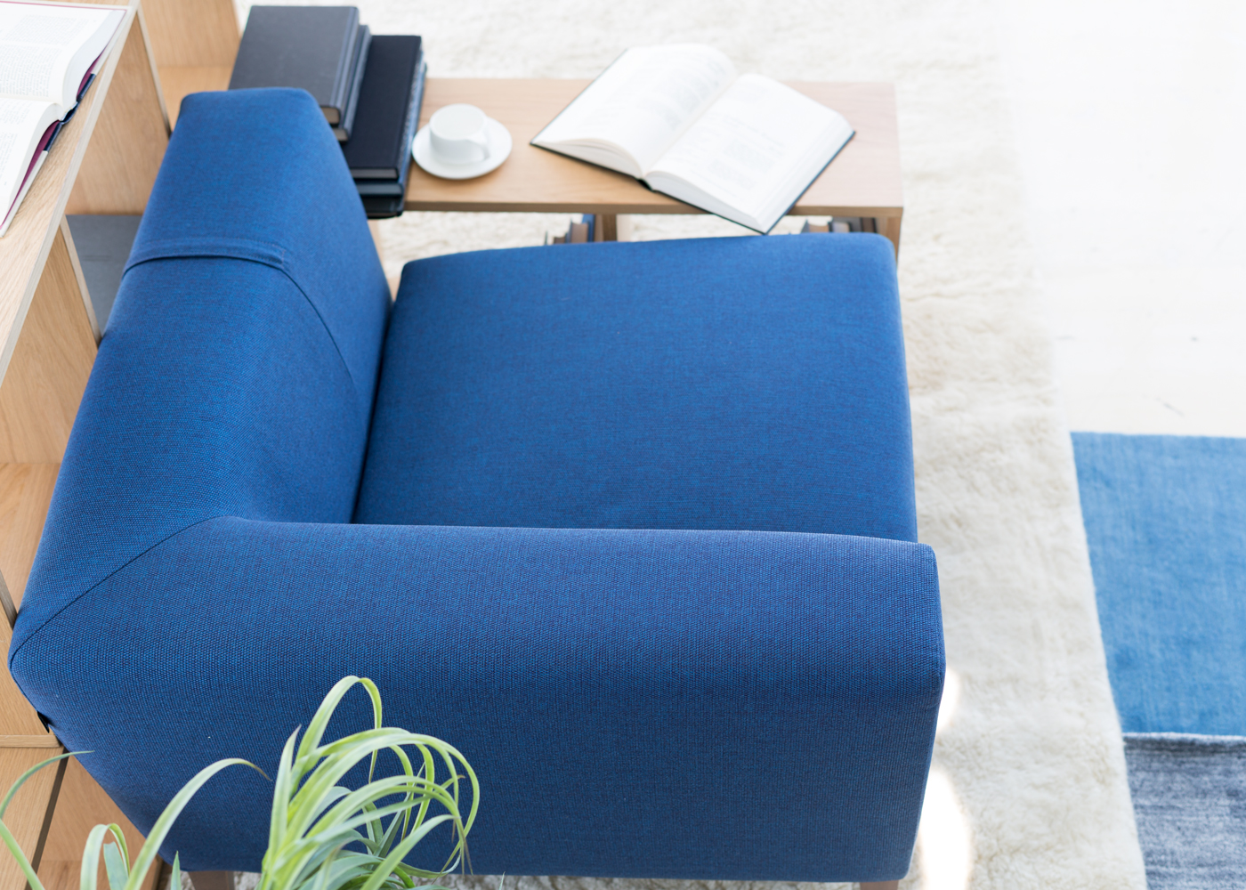 座り心地はNOYEのソファの中でも一番硬いと聞いていたこともあり、座った瞬間は硬さが際立ちましたが、実際座りやすかったですし、座っているうちにじんわりと支えてくれる心地良さが非常に良いなと思いました。結構、ソファは左右クッションの真ん中に座ったりするとヘリが沈みこみやすいと思いますけど、 全然そんなことなくてモールドウレタンの硬さも際立ち、良い座り心地だなと感じます。公共の施設にも使われている特殊なウレタンとのことで、耐久性の高さも安心感に繋がりますよね。