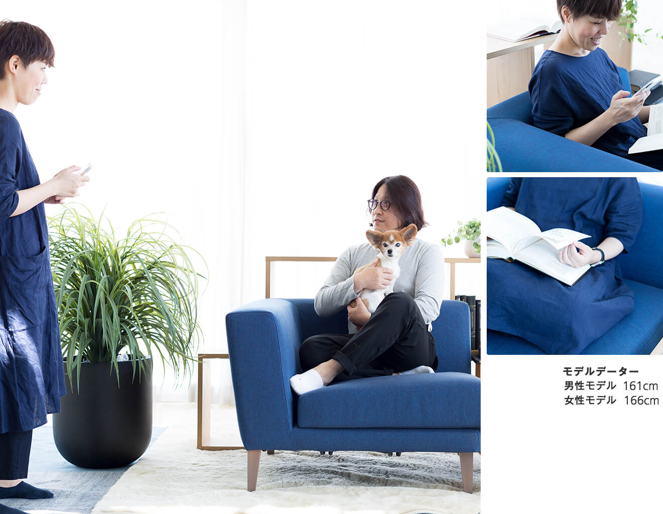 結婚して22年が過ぎ、子供も大きくなりこれからは夫婦のくつろぎの時間を作るアイテムとしてソファを購入検討していました。買い換えに当たり、求めていたことは毎日仕事から帰って疲れている身体を癒してくれるような、くつろぎを与えてくれるソファです。二人同時にゆったりと横になれるようにカウチソファセットが置けたらいいなと思っておりましたが、カウチソファセットの検討は今回が初めてなので実際に配置や見栄え感はどのようになるのだろうという不安がありました。それでも実際に配置して幅2,750mmのサイズ感やお部屋の抜け感がわかりましたし、TVや映画を見たり生活のイメージが湧いて大変良かったです。カバー脱着もしやすいように本体、クッション部ともにファスナー面を広くしている工夫がされていたり、座面高さもひざが余る事なく丁度よくて立ち座りも楽なところも魅力です。ある程度座面高さもあり、座面の奥行きが深いソファを探していたけれど、なかなか見つからなかったですが、夫婦のくつろぎの時間を作るアイテムとして理想のソファに巡り会えました。