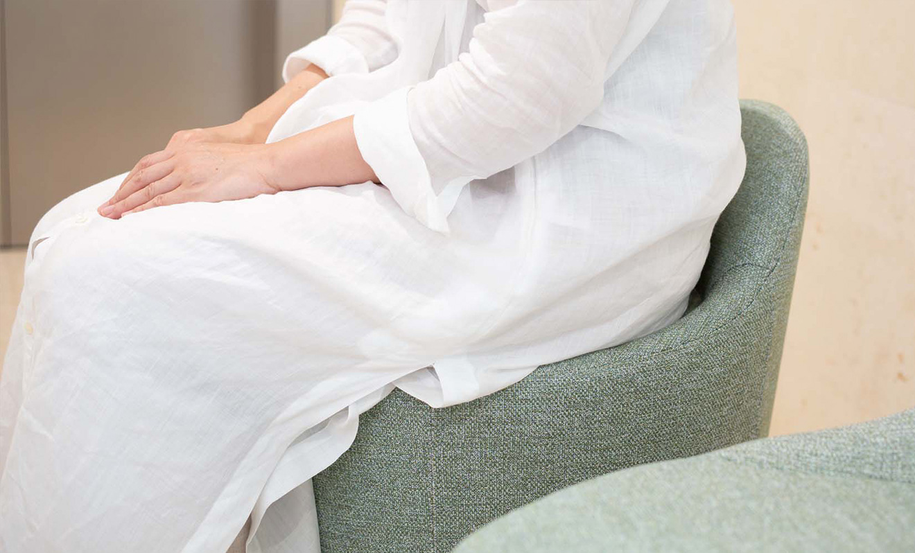 何もない腰掛けでは、無意識でも体は緊張したまま。美しさを追求してもソファとしての役割は無くさない。さりげなく⽀え、緊張を解いてゆく。