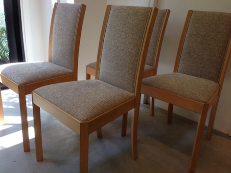 以前に、ソファの背もたれクッション部分を張り替えを行わせて頂きまして、今回はダイニングチェアセットを同じ生地にて張り替えでのご希望を頂きました。生地はすでに廃盤となっておりましたが、何とか在庫にてご用意させて頂くことが出来、リフレッシュのお手伝いをさせて頂けました。張り替えを行いましたことで、よりスマートな佇まいになりチェア自体の良さをグッと引き上げる事が出来たと感じます。ご依頼者様ご夫婦はとても穏やかな感じの方で、その優しい雰囲気からチェア自体もより優しい感じに仕上がった気もします。今後も大切にご愛用頂けますようにメンテナンスなど末永くお付き合いをさせて頂きたいと改めて感じました。