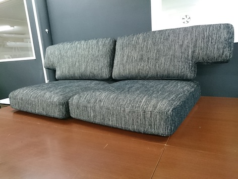 リフレッシュの為にカバー変更のご依頼をいただきました。シックなお色にしていただいたことで、また違った印象のソファを愉しめそうですね。今回はクッションにヌードカバーを被せることで脱着し易くして、メンテナンスも充実するように致しました。クッションを本体に収めていただくとどんな感じなんだろうかなと想像すると何だか楽しくなりますね。