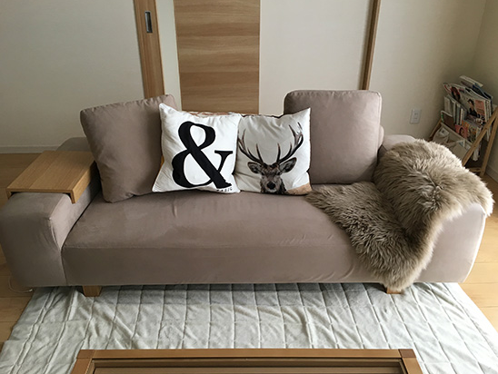 ベージュ系のカラーは違和感なくお部屋にソファを馴染ませてくれます。