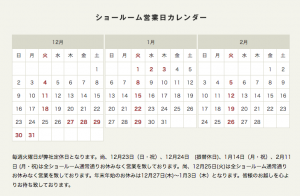 12月27日(木)〜1月3日(木)までが年末年始のお休みとなります。