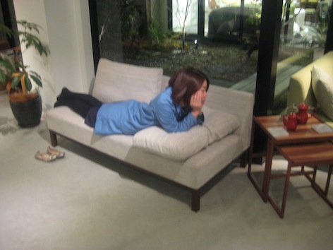 このようにクッションを枕かわりにしていただくと気持ちよく