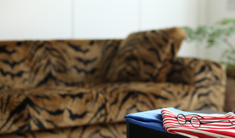 現在、色々な方向に虎ソファを動かすことで検討中です。