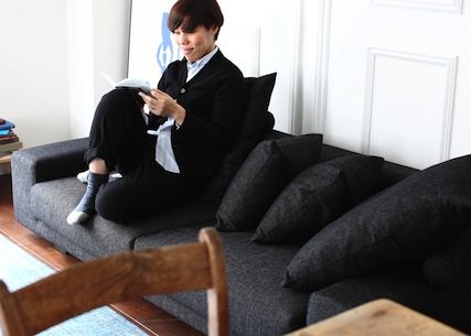 座面奥行きがとても広いので写真のように脚をあげてあぐらをかいて座ったり