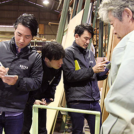 木枠に関してカポール材など普段より工場で見ている物の過程というのは実際に見に行ったことはなかったのですが、今回初めて目にすることにより普段どのように作られているのかなど、見て実感できたのは良い経験となりました。これにより木枠に関しての対応や接客に深みが増しました。また、作り手の顔を拝見することにより、安心と熱意が伝わりました。我々、NOYES がお客様に提供している価値は、見えないところにもしっかりと手が届いており、安心安全にて提供できていると実感しております。