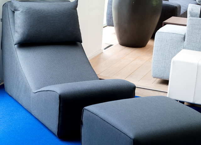 元々はオーニング(日焼けテント)生地の性質を活かし、屋外の天候下でも高機能を発揮するアウトドアファニチャー向けに開発されたファブリックです。最高の耐光性を持ち、水汚れ、油汚れが着きにくいのが、この生地の最大の魅力です。また、これまでのアウトドアファブリックにはないコットンの様な優しい肌当たり感を感じられます。