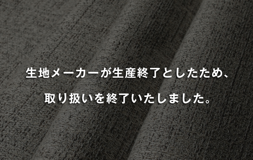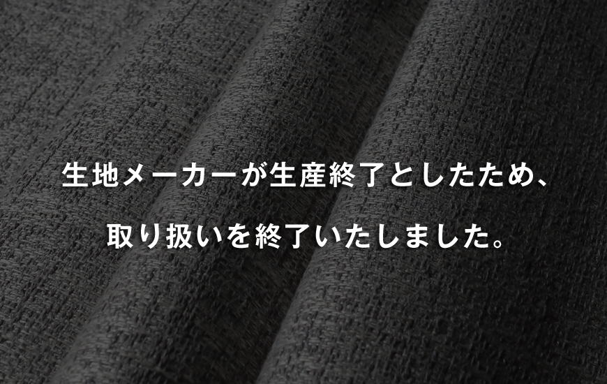 こちらのXランクSFシリーズにつきまして生地メーカーが生産終了となりましたことで、2019年3月15日(金)をもちまして取り扱いを終了いたしました。長らくご愛顧をいただきましたこと、誠に感謝申し上げます。