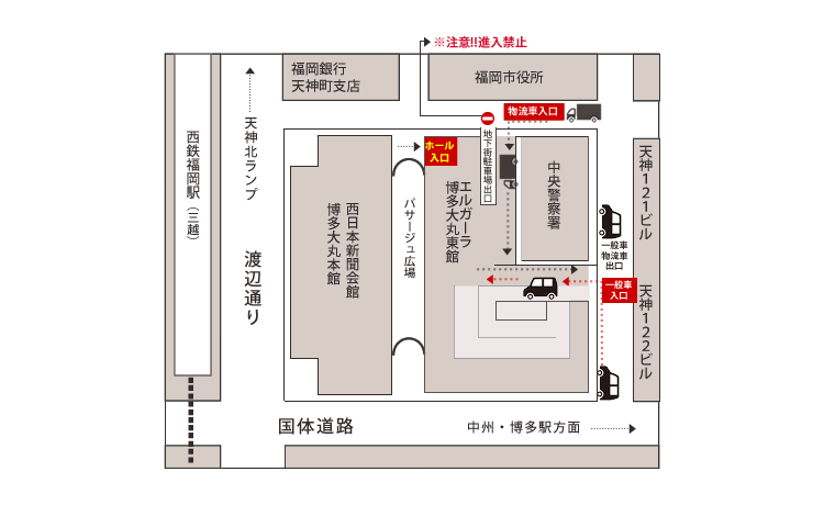 | ご注意 | 会場の駐車場をご利用くださいませ。地下4・5階の有料駐車場スペース(240台収容)をご利用ください。地下4・5階の北側エレベーターで7・8階に直行できます。駐車料金:最初の1時間 460円、以降30分毎に230円詳しくはこちら |
