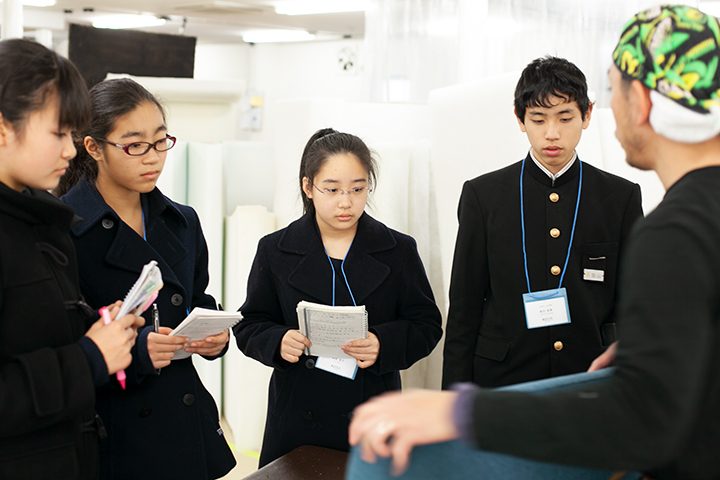 1月17日(木)から2日間。名古屋本社ショールームへ名古屋市立川名中学校の生徒さん4名が職場体験へ来てくださいました。与えられた仕事をするのではなく、自分で考え提案することの苦労や楽しさを感じて欲しいと思い、NOYESの全部署を紹介しどこの部署でお仕事をしたいか、自分自身で決めてもらいました。その結果、職場体験される生徒さん4名の内、3名はソファ作り、1名の女の子は、社長秘書を体験することになりました。「なりたい自分になる」という意思の種を心に一つ植えることができたら大成功です。