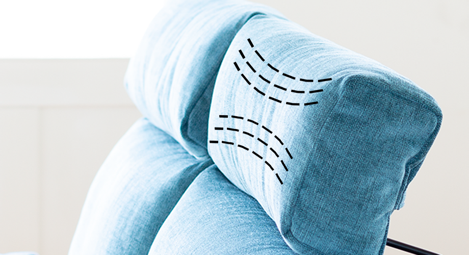 NewSugar Standard HSの専用ヘッドレストには厳選した羽毛を使用しています。ソフトな羽毛だからできる、 しなやかでコシのある感触は、自然な風合いでもたれた瞬間に「特別上等な心地よさ」を存分に味わっていただけます。