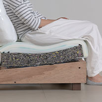 ファブリックとレザーでは、背面のパイピングの仕様が異なります。違いは写真の赤線部分でご確認いただけます。